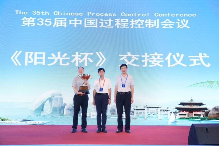 7月27日下午的闭幕式由公司副经理李创教授主持,并举行了中国过程控制会议“阳光杯”交接仪式,三亿体育官网唐荣年教授与中国自动化学会副理事长李少远教授共同将中国过程控制会议“阳光杯”传递给四川轻化工大学熊兴中教授。本届会议共收录论文325篇,设5个大会特邀报告、6个主旨报告、2个专题论坛。闭幕式最后,由李少远教授宣布第35届中国过程控制会议圆满闭幕。