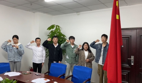 在鲜红的党旗下,由电气系员工党支部纪检委员李梦玲带领5名同志宣读入党誓词,完成了神圣而光荣的入党宣誓仪式。