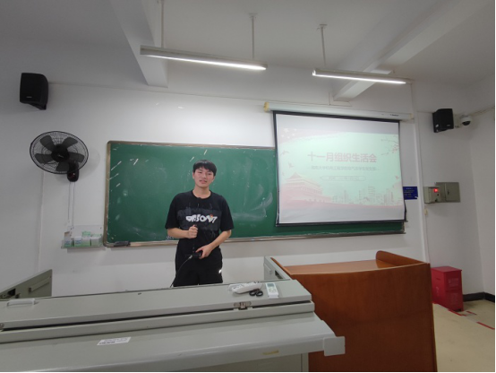 会议的最后,党支部副书记刘洁发表讲话。刘洁同志首先对封礼荣同志分享的经验进行了肯定,并提醒在座的大三党员们及时做好人生规划,明确未来道路,在继续学习与毕业工作之间做出抉择。同时,他通过分享自己计划选调的经历,向在场的党员强调了学历的重要性,勉励在场的党员同学努力学习,积极进取。刘洁同志向党员同学们提出了自己的期盼,并向考研的党员同学们发出祝福,祝愿他们考研顺利,成功上岸。