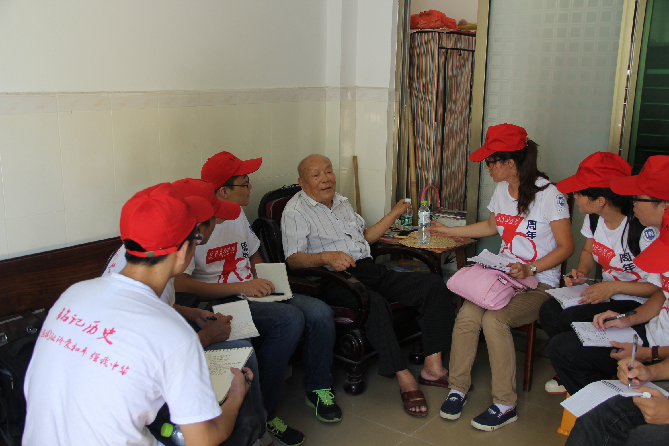 在琼海市委宣传部、民政局的帮助下,寻访团两组成员分别赴中原镇、万泉镇及塔洋镇寻访抗战老兵。采访中给我们留下深刻印象的是苏英銮老战士,她年事已高,行动不便,只能卧床与我们交谈。回忆在极其艰苦的抗战条件下,不断学习先进思想武装头脑,并带动身边的群众加入抗战队伍。在参加琼崖纵队先锋队时,在家乡琼东做通讯员,一次执行任务过程中,遭遇敌人的阻击身中两枪,倒在荆棘丛中满身刺伤,昏迷两天两夜才苏醒过来,被路过的村民及时发现,才得以幸存。最后,她拿出抗战时期的纪念品和一枚个人勋章与我们分享,它们见证和记录着当年那段艰难岁月中的光荣事迹,诉说着抗战时期与战友们的点点滴滴。随后,寻访团来到中原镇,采访吴惠民老战士。他1934年渡洋谋生,到新加坡半工半读。1937年七七事变,日本发动了大规模侵华战争,年仅十几岁的他深知天下兴亡,匹夫有责,毅然决然回国参加抗敌后援会、筹款总会及海南人组织的琼崖励志社等救国团体,每逢节假日都参加卖花筹款。1939年考入重庆黄埔军校,经过三年的刻苦训练,从少尉班长升任四十九师上尉连长,后调任降伞大队第八中队上尉分队长。1945年6月参加了广西丹竹机场的降落作战,占领丹竹机场消灭了数百名的日本鬼子。此外,寻访团对蔡淑蓉、刘国球、符树能、曹靖等4名抗战老兵进行了采访,他们都用自己受日本鬼子残酷迫害的血泪史控诉日本侵略者,希望能唤起国人的愤怒。