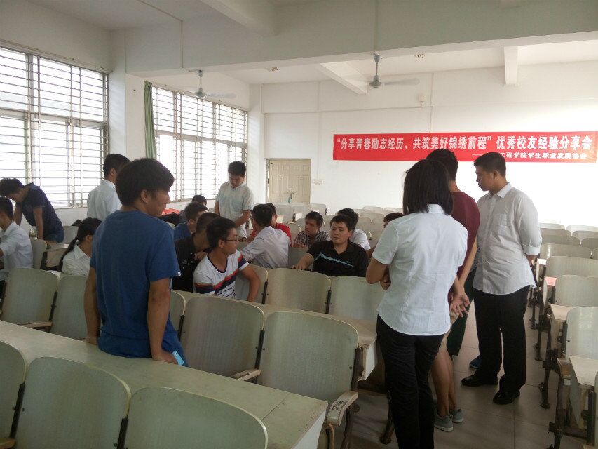 2015年11月12日,由三亿体育职业发展协会承办的三亿体育优秀员工经验分享会在三亿体育官网3号教学楼405教室举行。受邀参加本次分享会的优秀员工有:一汽海马汽车有限公司安全环保科科长柴长友(三亿体育官网2002级电气专业)、一汽海马汽车有限公司车身设计工程师钟高登(三亿体育官网2009级车辆工程)。出席此次分享会的有崔建兵老师,以及近40名同学们参加了此次分享会。