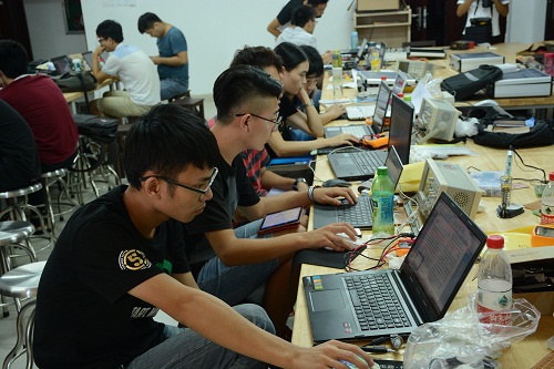 我们公司共有30多只代表队伍参加了本次竞赛,公司比赛赛场设置在理科研发大楼1715实验室。每支队伍都在认真分析赛题,专心制作自己的作品,团队间配合默契。10月25日下午4点,经过4天3夜的艰苦奋战,本次比赛正式落下了帷幕。赛区评委老师对员工作品进行封箱,随后进行初步测试。我们公司评委老师根据初测成绩推选出10组优秀队伍参加本次大赛评奖评优。