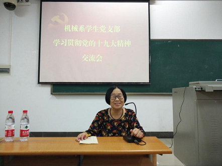 2017年11月7日下午,三亿体育机械系员工党支部于4-211召开了“学习贯彻党的十九大精神报告会”。红军后代罗曼阿姨、公司党委委员廖宇兰老师、支部书记崔建兵老师出席参加,机械系员工党支部全体党员、发展对象、积极分子参加了报告会。会议由支部组织委员廖宇轩主持。