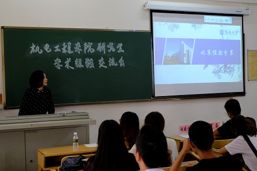 在主持人精彩的介绍中,本次交流会拉开了序幕。首先,老生代表施晓佳向我们分享了比赛经验,详细地介绍了一些比赛和申报书的内容,并分享了往届学长学姐的立项名单,鼓励新生积极报名参加各项比赛,丰富自己的研究生科研生活。