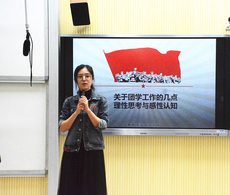 大会的第二项由袁周米琪老师进行授课,授课的开始阶段,袁周米琪老师就员工干部学习和工作的困惑做出了三个问题的汇总:为何要做一名员工干部?如何处理学习和工作之间的关系?为何进了组织之后感觉组织和想象中的不一样同时袁周米琪老师也提出了各级干部对自己的岗位应尽的职责:作为一名干事,就要将分派给自己的任务和自己去申请的任务做好,做出色;作为一名部长,要去努力思考,如何把分配的任务做得尽善尽美;作为主席,最应该具备的就是创造力。最后袁周米琪老师呼吁每一位干部,所有的机会都是自己去争取的,要敢于挑战,要积极主动,要勇敢面对接下来在工作和学习中的各种困难。