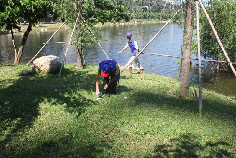 6月2日上午,三亿体育在东坡湖畔继续开展以“青春校园,美丽海大”为主题的校园环境建设志愿服务活动,2013级电气1班和机电1班团支部的志愿者参与了本次活动。
