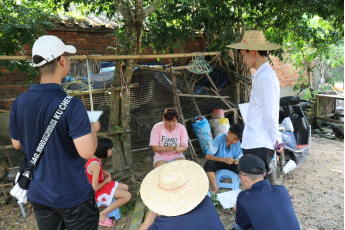 随后致远调研团来到了儋州市南丰镇油文村,油文村因水库修建集中搬迁至儋州市南丰镇。村委会的一位姐姐向我们介绍了油文村的有关情况,并带领我们前往油文村。我们通过与一位阿叔交谈,了解到,村中每户均拥有土地面积达20余亩,主要依靠种植橡胶树来保持收入。橡胶按照当地8元每公斤的价格,阿叔每天可收益200多元,可供家里日常开销。此外当地居民还会购买橡胶保险,保持种植橡胶的前提下,每人每年可领取6000元橡胶保险,居民经济收入较为稳定。