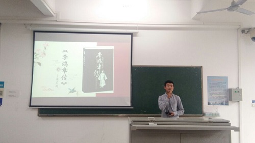 主持人简要介绍后宣布读书交流会正式开始。各组的代表依次上台分享了各类书籍,讲述自己读书的感触与心得。余文升同学与大家分享了余华的作品——《活着》,与大家探讨时代大背景下的人生,激励同学们珍惜当下幸福生活、积极奋进;罗宇同学推荐《习近平讲故事》这本书给大家,并生动讲述了“习近平自行车与末班车”故事,向我们展示了如何做一个合格的党员;钟源孜同学将老舍的《骆驼祥子》与海明威的《老人与海》对比阅读,鼓励同学们勇于挑战、战胜自我;刘瑜明同学带来《文化苦旅》等经典散文名篇,黄佳润同学分享《苏东坡传》等人物传记,使同学们感受到各类书籍的不同魅力。