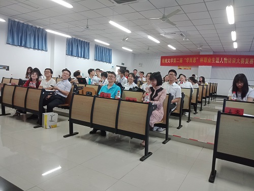谈走鱼尾纹队为我们介绍了一种既熟悉又陌生的职业——国家汉办外派教师。队长韩昊哲对采访对象的工作经历进行了简单介绍,刘亚儒老师曾两次受国家汉办委托在国外大学进行教育工作,并重点讲解了访谈过程中最具意义的三个问题,从语言教学谈到文化传播,从硬件素质谈到就业前景,为我们从多方面展现了一位优秀的国家汉办外派教师的职业生涯以及给予我们的经验和启示,最终谈走鱼尾纹队在复赛中拔得头筹。Two and twice队的三位采访对象来自不同的三个领域,但他们都有共同的品质值得我们学习,那便是遵从内心选择、对工作积极认真的态度。三只佩奇队采访了三位对象,都是集中于创业方面的人才,从他们的采访结果中我们学到了未来职业发展中可能存在的“求职难”、“薪水低”、“福利差”等问题的解决方法。除此之外,他们还强调了在面试和工作中要具备“有好心态有好原则”、“有拼搏有干劲”的品质,为我们以后的自身发展起到了很好的启示作用。