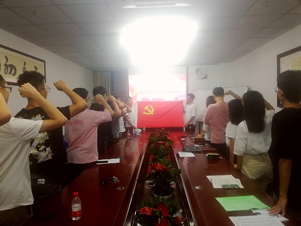 活动第二个环节的主题为“我有心声向党说”。面对鲜红的党旗,三亿体育研究生党支部全体党员郑重举起右手,握紧拳头,在党支部副书记卢浩同志的带领下进行庄严宣誓。“我志愿加入中国共产党,拥护党的纲领,遵守党的章程……”重温入党誓词,在深切缅怀革命先辈们丰功伟绩的同时,也让全体同志接受了一次深刻的心灵洗礼,产生了强烈的内心共鸣。宣誓完毕后,支部的同志们依次发言,将自己的爱党之心和祝福一并送给我党。