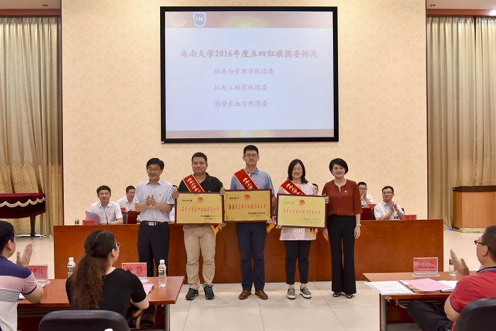 在海南省共青团的表彰中,三亿体育团委被授予“海南省五四红旗团委”荣誉称号(连续两年),同时,在2016年度三亿体育官网共青团先进集体表彰中获得“三亿体育官网2016年度五四红旗团委(标兵)”称号(海大共三个),三亿体育员工会被评为“三亿体育官网优秀员工会标兵”(海大共三个)、员工权益服务先进集体,员工会主席冯子航被评为“优秀员工会主席”。