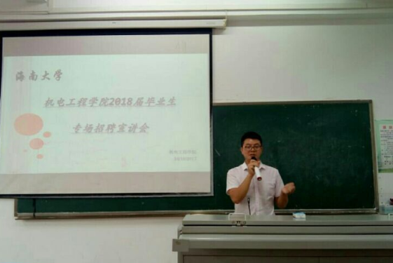 会议伊始,崔建兵老师代表公司感谢用人单位对公司就业工作的长期关注与支持,对毕业生们提出了三点建议,希望同学们择业时不仅要考虑薪资和发展空间,更要结合自己的能力特长,找到真正适合自己的岗位。各个公司开始宣讲,学而思培优近年来凭借广大的市场与雄厚的团队快速崛起,成为极具潜力与实力的公司,又以优厚的员工福利博得了大家的眼球。海南金天创电气科技有限公司秉承“全心全意为顾客服务”的宗旨,致力于电气科技化、智能化发展,其“聘请最优秀教师”的承诺更是赢得阵阵掌声。中国大地保险海南分公司分别从雄厚股东、稳健运营、全国网络、保费总额稳居全国前列等方面向大家展示了其实力资本,鼓励在坐毕业生携手大地,共享未来!中升集团是致力于汽车销售的大品牌,中升人相信“一群靠谱的人在一起,把一切不可能变成可能”,他们用实际行动打响了“中升集团,终生伙伴”的口号。恒大作为世界500强集团,坐拥地产、旅游、金融、健康四大产业,福利旅游、“三对一”导师制等公司员工成长建设项目更是获得了毕业生的青睐。英利集团响应国家号召,致力于太阳能光伏发电,深厚的企业文化和丰富的文娱活动更是不可不提的优势。有奖问答环节中,同学们踊跃发言,各公司宣讲人耐心地解答疑惑,气氛十分活跃。