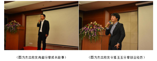 杰出员工冉超、令狐玉玉等数位员工和在会上分享了他们的创业和成长故事。冉超首先介绍了自己的发明专利,以及如何将专利转换为创业实力,他勉励大家自强不息,注重提高自身能力,同时感谢老师们对自己的教导。令狐玉玉与员工们共同铭记校训“儋州立业,宝岛生根”,回忆了当年在儋州的艰辛与困难,她说母校教会了她独立、吃苦、踏实的品格,感恩母校对自己的培养,并真诚祝愿师弟师妹们能够走得好、走得稳、走得远。
