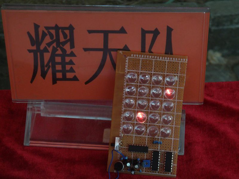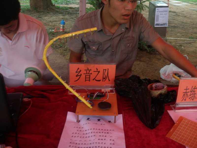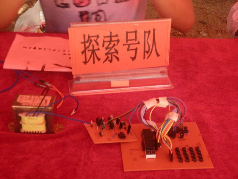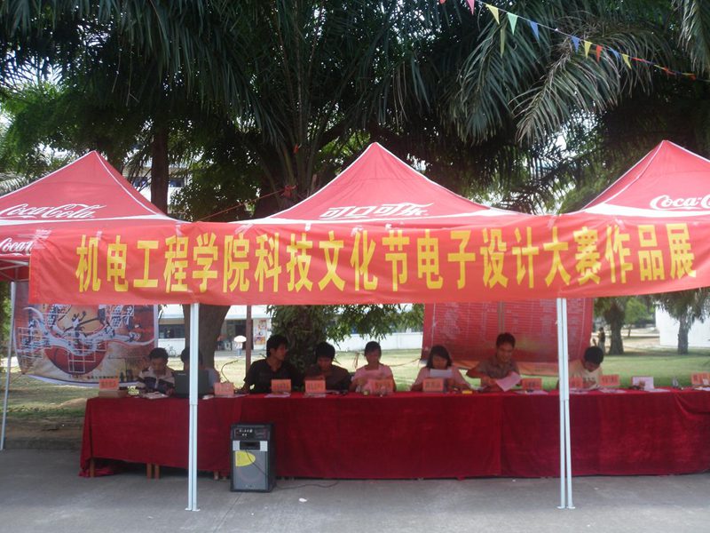 5月8日在一食堂前对科技文化节电子作品进行了展出,吸引了大批员工,同学们怀着高度的好奇心提出了种种疑问,工作人员对其进行耐心的讲解