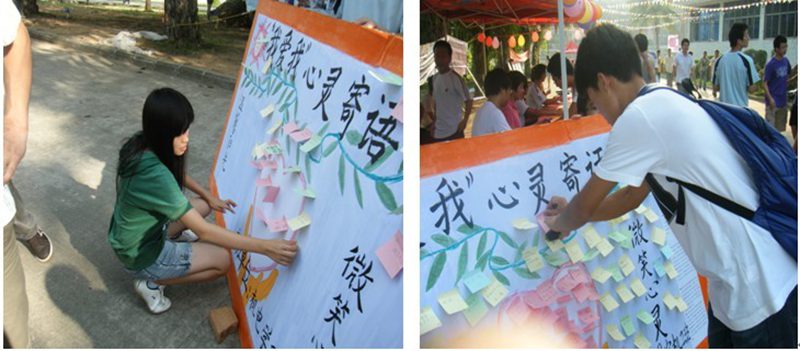 活动从下午4:30持续到6:30,期间播放了老员工心理健康教育的广播,宣传了心理健康的重要性及必要性。来往的同学也积极响应,写下自己对美好生活的寄语,并在“温馨阳光,微笑心灵”的活动主题的横幅上签下自己的名字,以实际行动表明了热爱生命,积极乐观的生活态度,以及对美好青春的祝福。最后,机电公司辅导员崔建兵老师和班主任林茂老师也来到我们的活动现场为我们写下祝福语,并在活动结束后与我们所有工作人员合影留念!