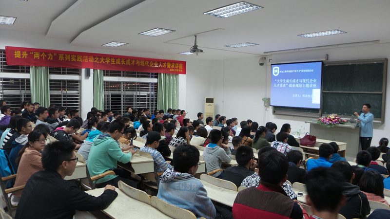 12月14日,三亿体育邀请海南现代科技集团董事局副局长兼海南赛诺实业有限公司CEO邢青涛先生在3教212为公司新生作 “老员工成长成才与现代企业人才需求”的主题讲座交流会。公司党委副书记黄国标、辅导员李青老师、海南现代科技集团一行人同部分新生一同聆听了讲座。讲座由黄国标副书记主持。