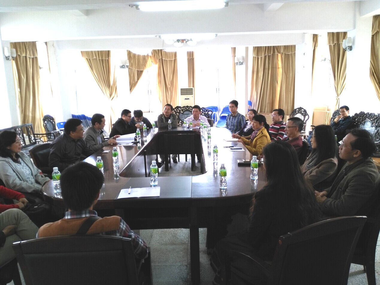 2016年1月18日下午,韶关公司物理与三亿体育经理郑春龙教授一行八人来访公司,公司经理翁绍捷、机械系主任廖宇兰、副主任梁栋、实验室主任樊军庆等领导和老师出席交流会。