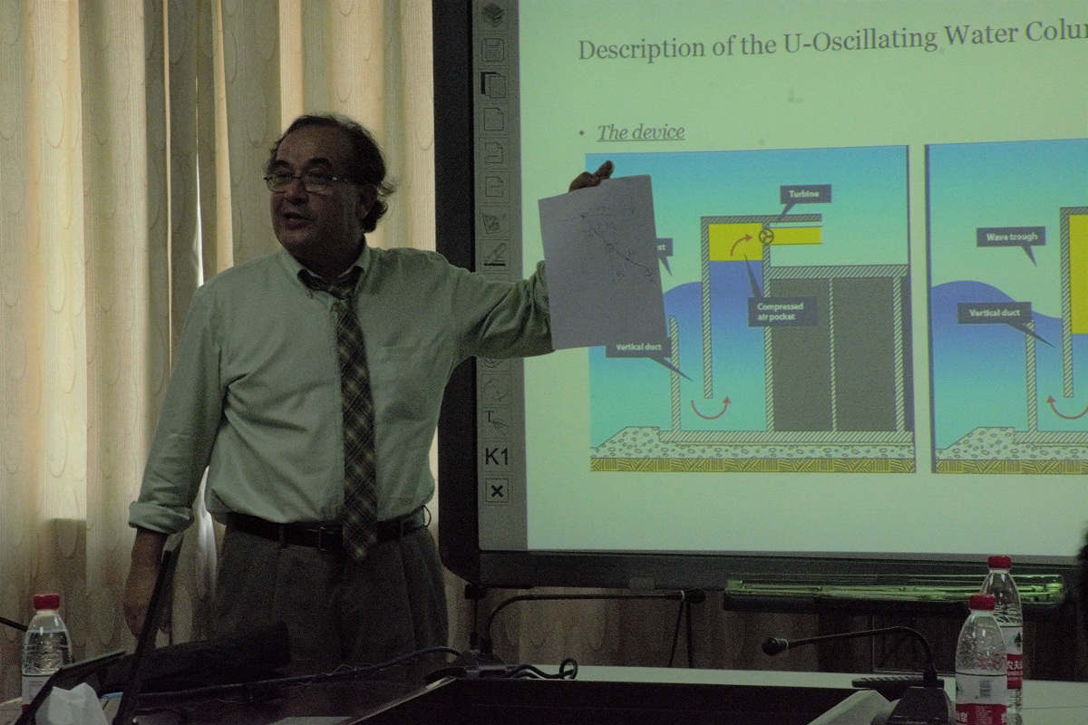 马庆芬副经理对Pol D. Spanos教授的到来表示欢迎,并用英文从历史沿革、团队结构、员工培养、对外交流与合作、科学研究等方面介绍三亿体育。随后,Spanos教授对非线性随机振动分析理论进行了深入的剖析,细致地介绍了非线性随机振动分析技术在机械工程、航天工程、车辆工程、控制工程、材料工程等领域的应用前景,尤其以振荡水柱岸式波浪能发电系统中波浪能采集的结构参数优化为例,具体介绍了该项技术的应用过程和效果。讲座中Prof.Pol D.Spanos儒雅的气度,严谨的论证,风趣的语言激发了师生们的兴趣,参会师生踊跃提问,与Spanos教授开展了热烈的互动与讨论,学术交流气氛活跃。