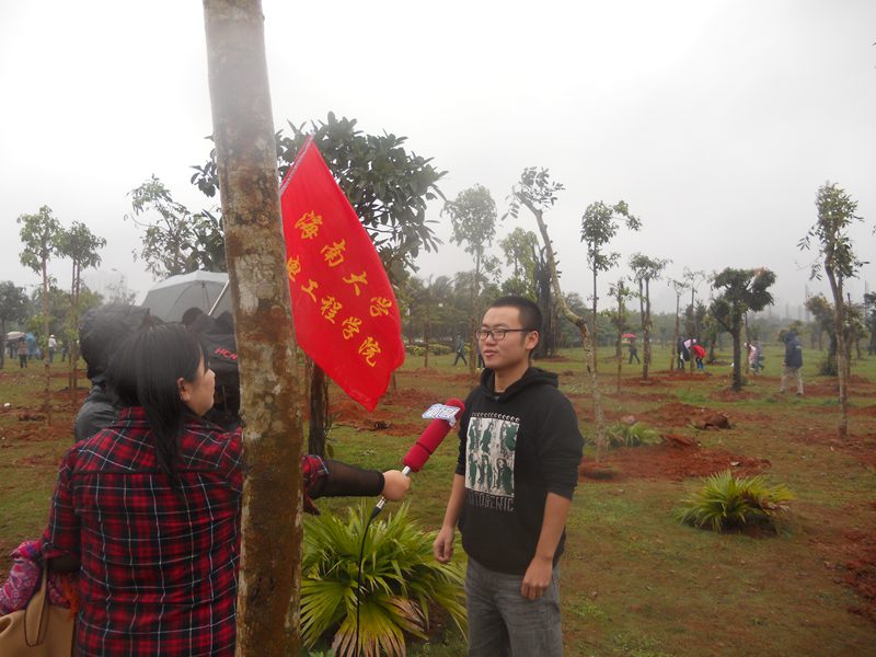 早晨7点40分,公司团学干部和青年志愿者于海大北门集合,乘车到达植树地点——世纪公园。经过短暂的队伍整理后,大家领取了植树工具并投入了紧张的植树工作。尽管天气不好,同学们还是积极投入工作,植树现场很快呈现出一派热火朝天,争先恐后的劳动场面。有的同学搬运树苗,有的同学扶树苗,还有的同学填土,植树活动合理有序的进行着。经过一个多小时的努力,原本平整的土地上种满了绿树。“虽然很辛苦,但是能为城市绿化作出自己的贡献,我们感到很高兴。”这是一名团学干部接受电视台采访时说的话,也道出了所有参加植树活动的同学的心声。