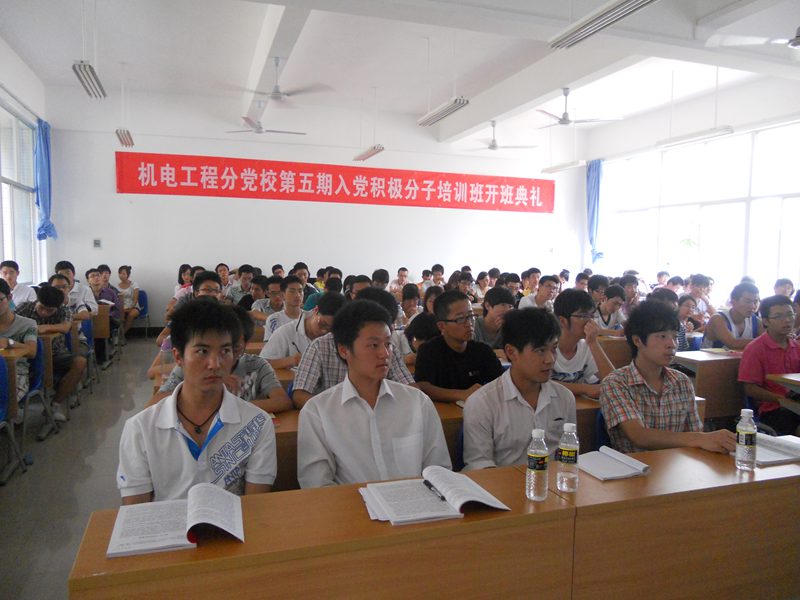 4月21日下午3点,三亿体育分党校在四号教学楼106举行第五期入党积极分子培训班的开班典礼暨入党宣誓仪式。机电工程公司党委副书记黄国标、公司团委书记崔万春出席了仪式,参加仪式的新党员和入党积极分子共200多人。开班仪式由公司学工办主任陈秀妍主持。