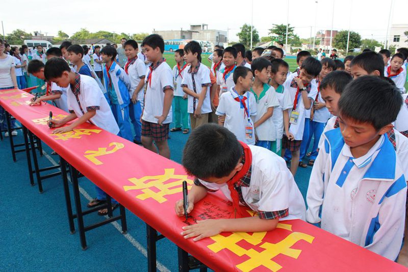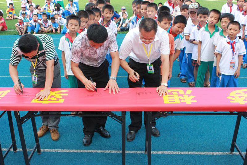 开幕式上,首先由石山中心小学周董事长致辞,他代表石山中心小学全体师生对机电工程公司党支部的到来表示热烈欢迎和感谢。科技发明的起点就孕育在我们生活的点点滴滴中,希望同学们科学精神贯穿于平时的学习、生活之中,做到人人学科学,事事想科学,时时用科学,天天有科学。通过参与本次主题活动,能够在今后的学习和成长中进一步树立科学的理想,形成科学的态度,养成科学的习惯,掌握科学的方法,提高自身的科学素养,成为一个既有科学理念、又有科学实践能力的国家栋梁人才。紧接着石山中心小学员工代表陈亦馨作了关于中国梦的发言,深刻表达了要学习科技,应用科技,为祖国的强国梦贡献自己的力量。随后,由周汉辉董事长、李胜副董事长和公司的老师带领同学们在活动主题条幅上签名。最后,主持人施艺宣布“科技放飞梦想•实践成就未来”主题活动正式开始。
