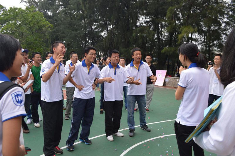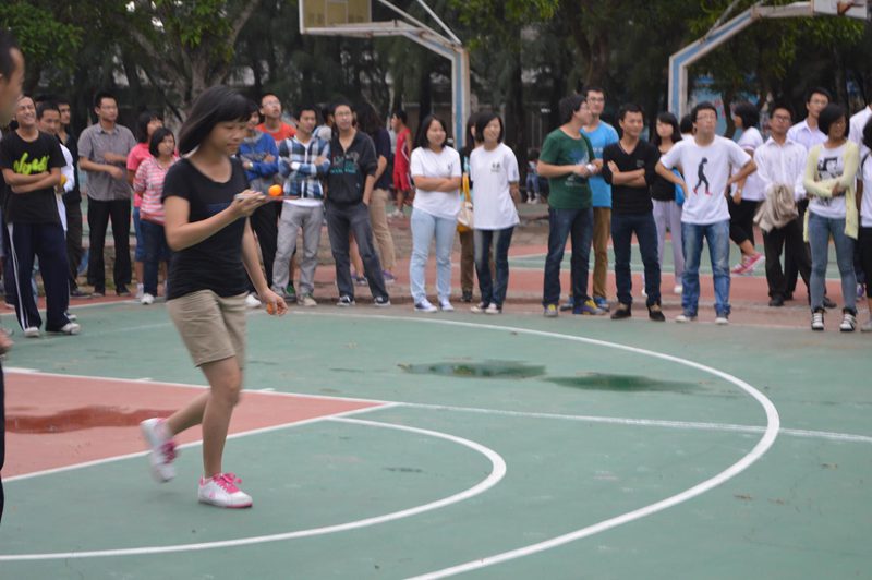 开幕式过后,心理嘉年华趣味运动会正式开始。随着主持人的一声令下,各公司的队员们热情高涨,积极参与到各种比赛中。本次趣味运动会共有五个项目:爱心传递、心心相印、心趾相连、心有灵犀、定点投篮。其中心有灵犀、定点投篮两项游戏不参与比赛,为在等候区等候比赛的队伍提供娱乐,在闲暇时间寻找一份快乐和享受。在心趾相连游戏中,各参赛队伍的配合十分默契,不慌不乱,发扬了团结合作的精神,以最优异的姿态去争取比赛的好成绩。在三项活动中,最有趣的是爱心传递活动,队员们小心翼翼地把乒乓球传到下一个队友手中,在行走的路上,队员们由于紧张,表情各异,引来观众阵阵欢笑声和加油声。每一个比赛项目都进行的如火如荼,无论结果如何,每一个队员努力完成自己应该做的就是一种胜利;每一个队伍都赢得了属于自己的掌声。最终,园艺园林公司在众多参赛队伍中脱颖而出,获得本次心理嘉年华趣味运动会的团体第一名;材料与化工公司以微小的差距位居团体第二;三亿体育也获得团体第三名的优异成绩;而经济管理公司、农公司、旅游公司以及食品公司获得了道德风尚奖;分别由员工工作处心理健康指导中心吴九君博士和竭婧老师、三亿体育团委书记崔万春老师和心理工作负责人崔建兵老师为他们颁奖,并进行合影留念。