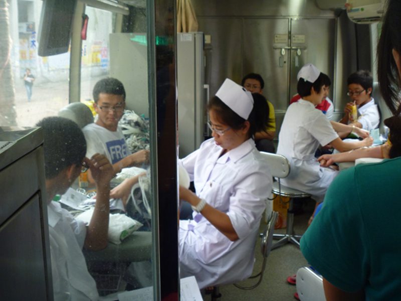 生命需要血液,爱心正在传递;5月24日下午,在三亿体育青年志愿者协会的组织下,机电学子在第二食堂门口参加了无偿献血活动;为挽救他人的生命奉献出自己的力量。 烈日当空,酷热难耐,但是这也难以阻挡同学们如火的热情;早早的在食堂门口排对等候献血;同学们按顺序进行了领表登记、血型测定、体检、抽血和观察休息。海口市血站医护人员热情而耐心地给同学们讲解相关事宜,机电公司青年志愿者们也在场外进行了一系列有关献血的宣传工作,丰富了同学们的献血知识,也减少了同学们的顾虑与担忧;献血整整持续了三个小时,虽然每个人献出的血液并不多,但是集体的力量是巨大的;可能手臂还有些疼痛,但是,每个人的脸上都带着满足的笑容,因为,他们的爱心温暖了这个校园。 此次献血活动,体现了公司员工关爱健康、关爱他人的精神品质,培养了老员工的社会责任意识和无私奉献的精神;希望有更多的人加入无偿献血的队伍中来,用自己的爱心和血液,为和谐社会、和谐校园奉献出了自己的一份力量。