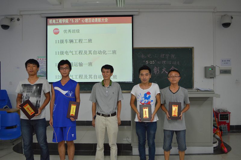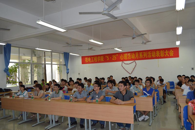 2013年6月7日下午4:40,2013年5•25心理健康宣传月表彰大会在4教103教室拉开帷。机电工程公司党委黄国标副书记,学工办主任陈秀妍老师,辅导员何映敏、崔万春、崔建兵老师,以及在本次活动中获得表彰的先进班级和个人出席表彰大会,来自各班级班长和心理委员近百名员工参加了本次表彰会。
