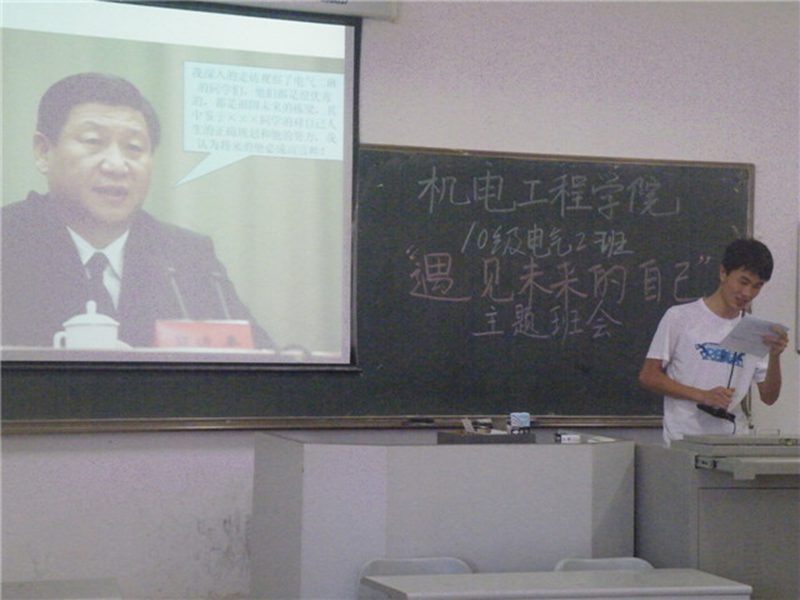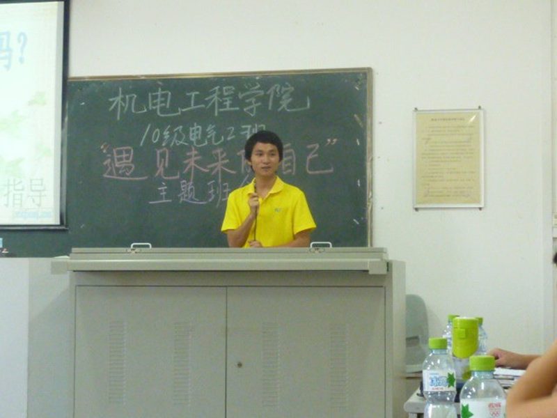 2013年6月3日,三亿体育10级电气工程及其自动化二班“遇见未来的自己”主题班会在三教多媒体教室成功举办。10级辅导员何映敏老师指导并参与了本次班会的全过程,班主任严春丽老师也来到班会的现场观看并为本次班会做了总结。通过本次班会,我们想带给班级所有的同学一种“梦游十年后”的意境,让大家在展望未来的氛围内提前感受即将到来的毕业,让大家认识到时间的短暂,谋划未来,积极准备。整个班会的氛围既活跃又不失适时深沉的思考。最终班会在老师的精心指导、班委的充分准备、同学们的积极参与下取得了圆满的成功。