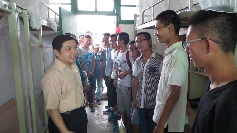 新学期伊始,为了解公司员工的住宿条件和生活状况,给同学们创造一个良好的校园生活环境,为提高员工的社会竞争力奠定一个良好的生活基础。10月15日下午,公司何忠平副董事长在后勤管理处邢谷川处长、公司党委黄国标副书记及校办、公司学工办教师们的陪同下专程来到六栋男生宿舍看望员工们。