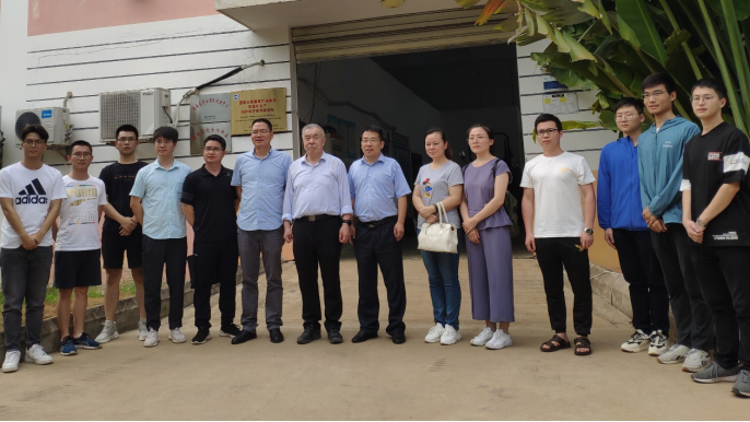 座谈会后,陈学庚院士参观了公司农机实验室,张喜瑞教授对农机团队的科研情况进行了汇报和实机展示,着重介绍了智能化割胶装备的研发进展,陈学庚院士肯定了农机团队的工作,并就展示的两种割胶装备提出了改进方案。
