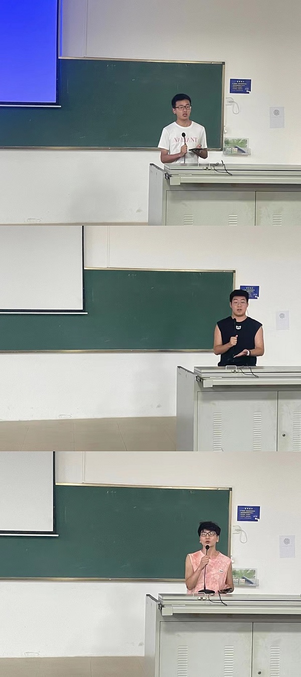 会议的第二项议程是邀请优秀员工代表分享考研经验。汽车系员工代表杨松卫、电气系员工代表潘家和、张港分别从信息查找、专业课备考、考研心态等方面分享自己的考研经验。