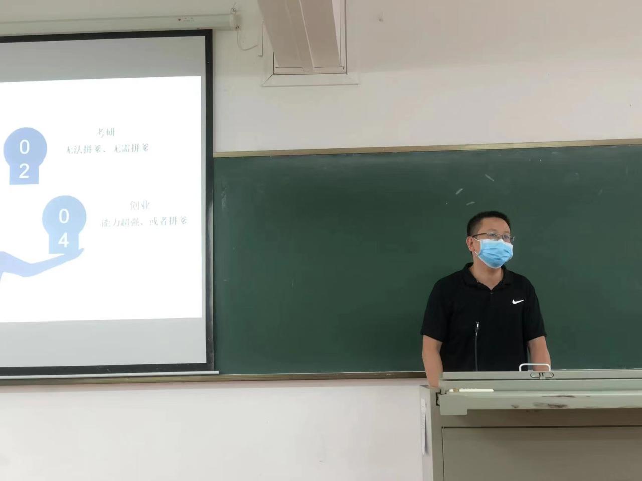 罗洪峰老师为同学们做考研动员宣讲,他谈到,同学们应该根据自身情况,选择自己合适的报考单位。同学们可以从自己的性格、能力、家庭、职业目标、目前成绩、职业类型等方面来着手进行考虑。提醒大家尽快地确立自己的奋斗目标,加强自身的能力培养与知识培养。