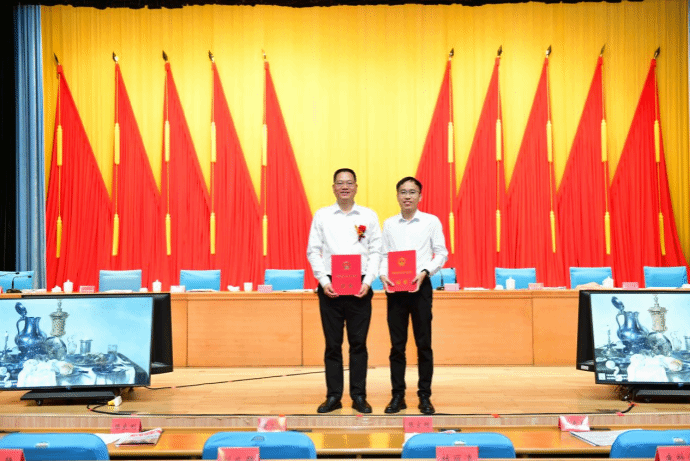 获奖现场(左一张喜瑞教授,右一文伟教授)