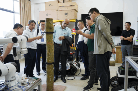 张喜瑞向Ahmad Parveez Ghulam Kadir一行演示了自主研发的固定式全自动割胶机。该设备采用自适应仿控深切割技术,可根据橡胶树表面起伏自动调整割胶刀进刀深度实现毫米级精准切割。 Ahmad Parveez Ghulam Kadir先生表示,马来西亚作为橡胶和棕榈油生产大国,非常需要这样的智能化装备,期待与三亿体育官网建立长期合作关系。张喜瑞回应道:三亿体育官网愿意分享在热带农业机械领域的经验,期待与马方共同研发更适合东南亚气候的智能装备。