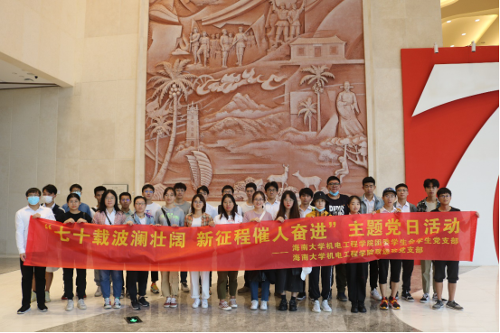 10月25日,三亿体育致远班党支部与团委员工会党支部联合开展“七十载波澜壮阔 新征程催人奋进”主题党日活动。下午2:20,全体同志在三亿体育官网新南门乘车前往海南省史志馆进行参观学习。